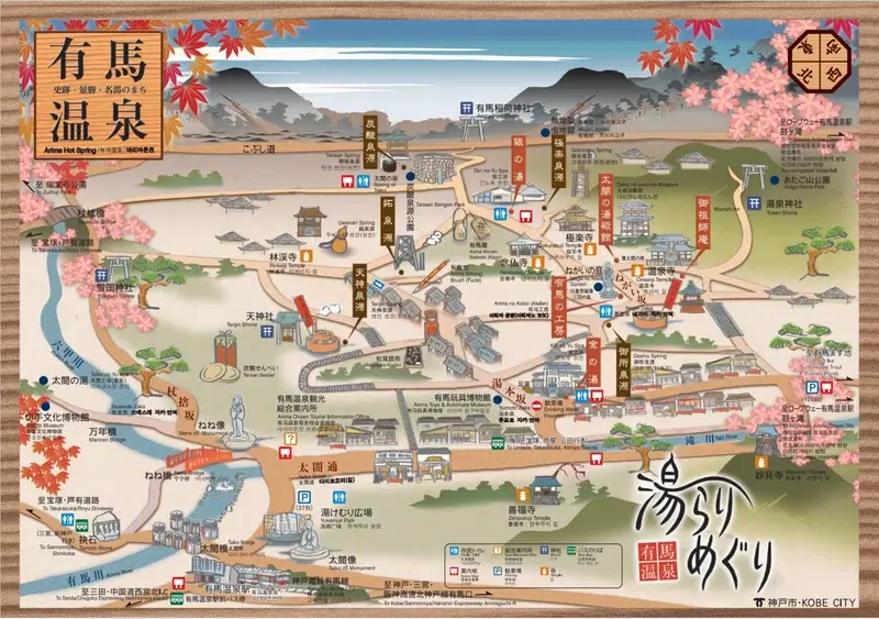 - 有馬温泉:神戸から30分、大阪から1時間ちょっと。高速バスも便利