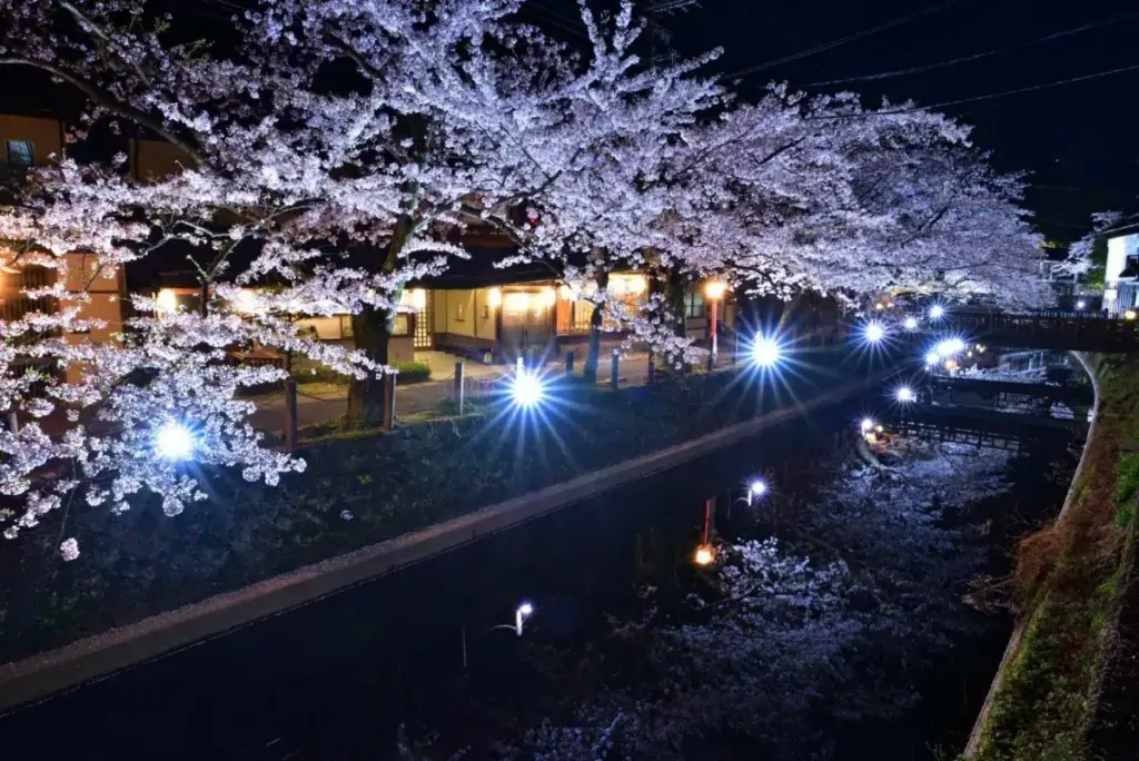春は桜と温泉街が彩りを添えてくれて、夏は花火大会や川のせせらぎと一緒に温泉気分を楽しめます。